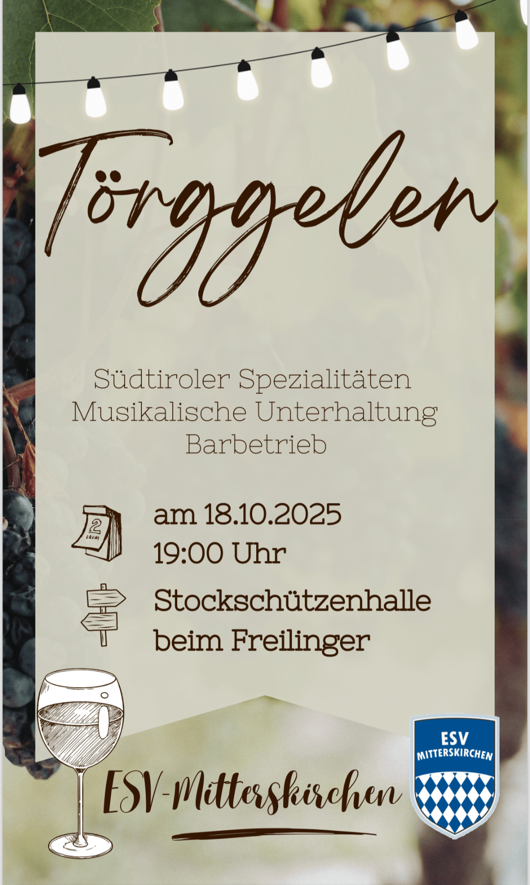 Stockschützenhalle im Ort Hofmarkstraße, Mitterskirchen, Bayern, Germany« Alle Veranstaltungen 3.Oktober.2025 @ 8:00 - 17:00 Törggelen Nach der Verschiebung aufgrund steht nun der neue Termin für das Törggelen! https://skiclub-mitterskirchen.de/wp-content/uploads/2025/10/VID-20251003-WA0008.mp4 Eintritt Eintritt frei…
